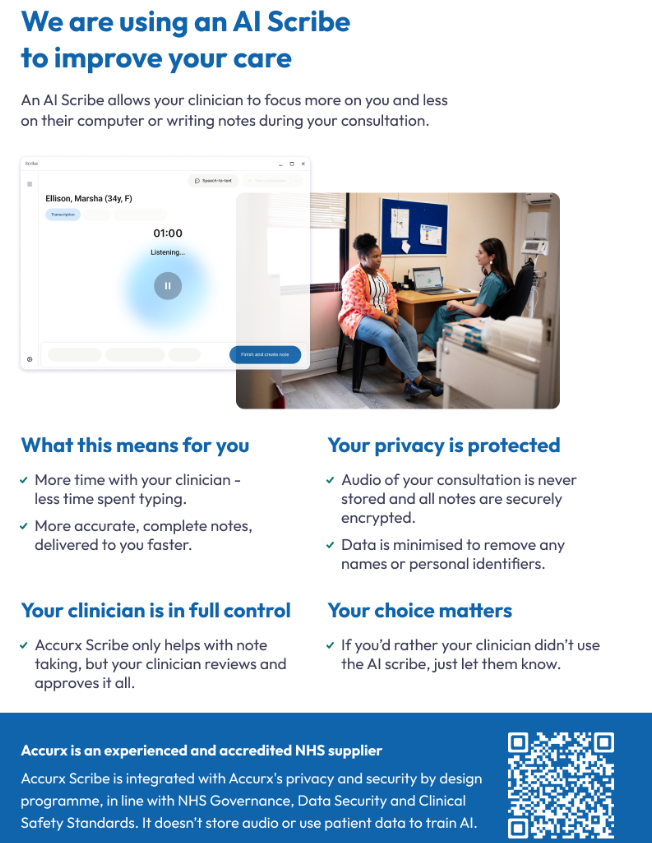 To ensure we can provide you with the best possible care, it is important that the contact details held on your medical record are correct. This includes your phone number, email address, and home address. Having the correct information helps us keep you informed about appointment reminders, test results, and important updates. If any of your details change, please notify us as soon as possible so we can update your record.